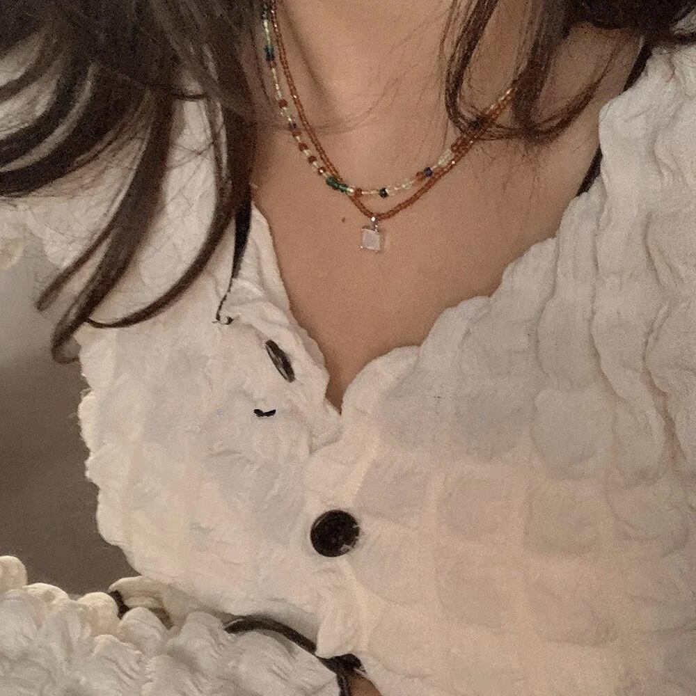 2連のヴィンテージフレンチスタイルが魅力のビーズネックレスです。クラシックなデザインと華やかなビーズが絶妙に組み合わさり、シンプルなコーディネートに上品さをプラスしてくれる一品。どんなシーンにもマッチし、自分らしいスタイルを演出するのにピッタリです。