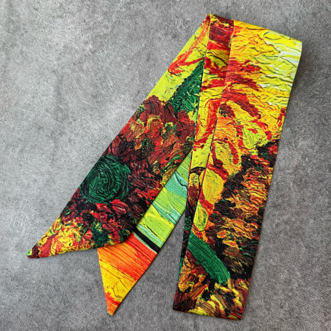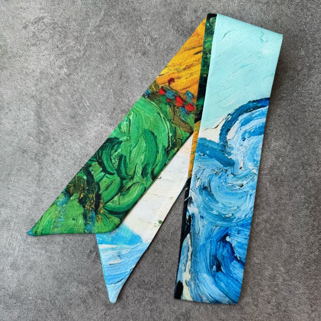 アートモチーフを取り入れた魅力的なスカーフです。多様なスタイリングが楽しめるマルチウェイデザインは、どんなシーンでも活躍します。シンプルなコーディネートにアクセントを添えたり、特別な日の装いに華やかさを加えたり。自分自身を自由に表現するためのお手伝いをしてくれる素敵なアイテムです!