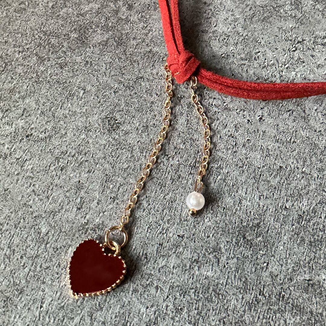Beatique / NECKLACE No,017 red velvet heart & pearl choker
