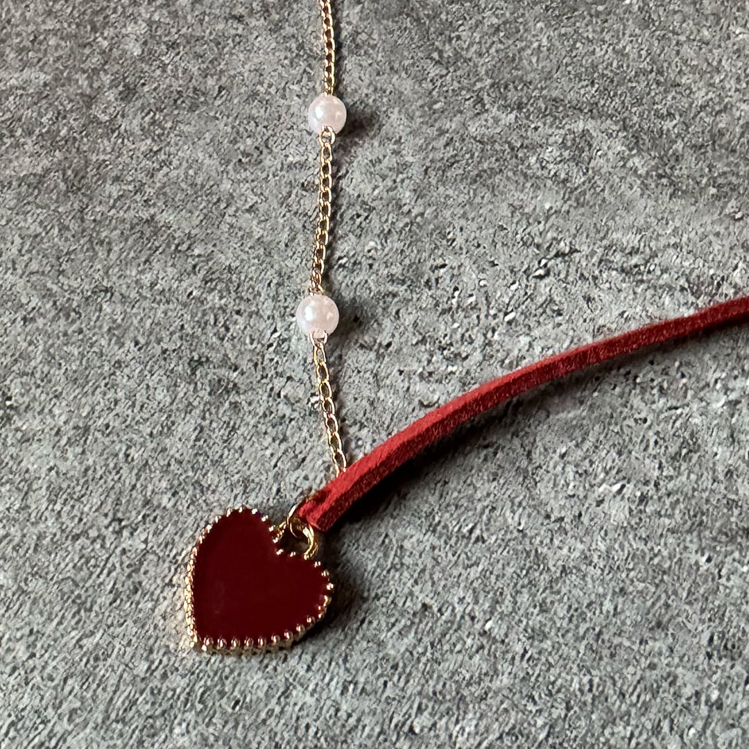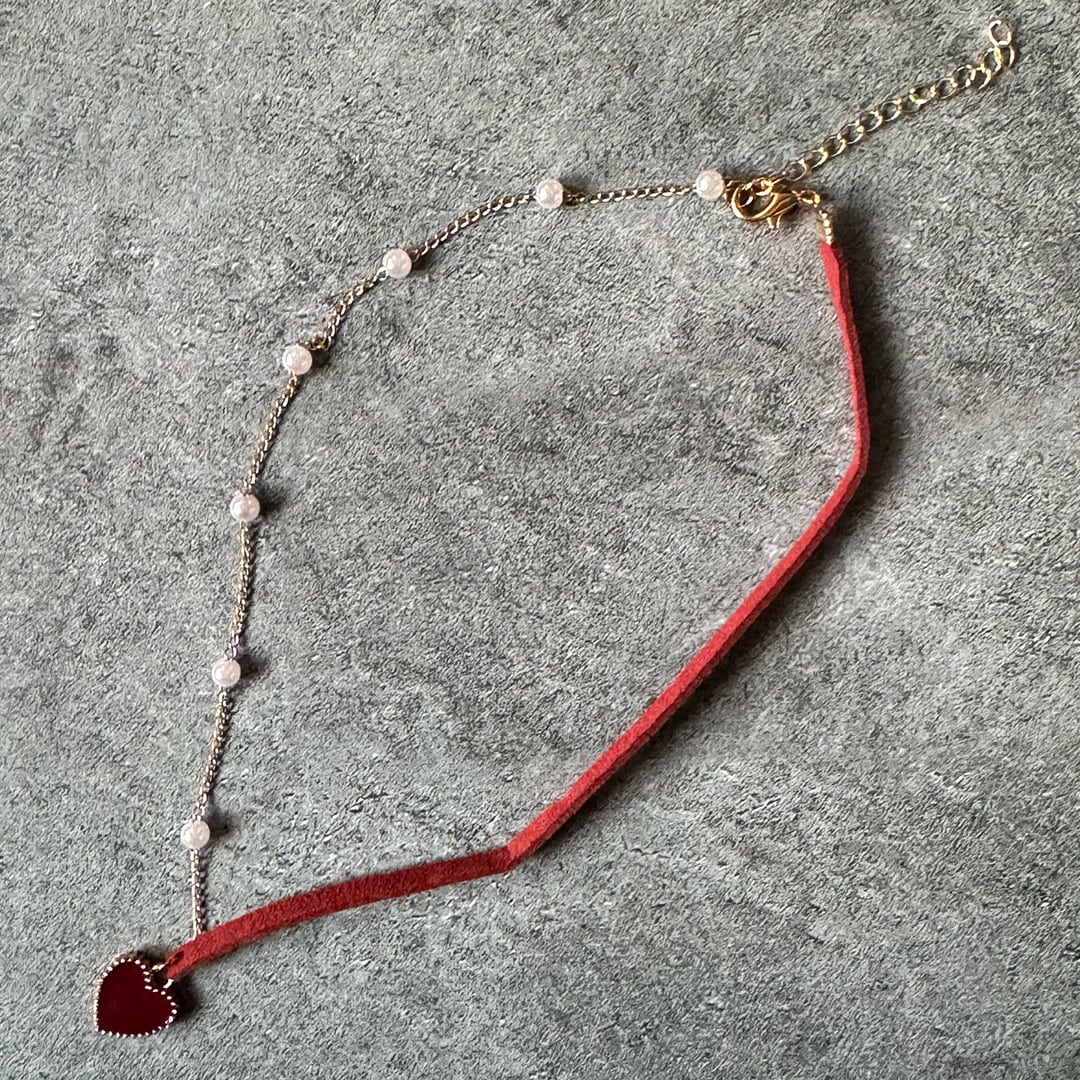 Beatique / NECKLACE No,018 red velvet heart & pearl choker