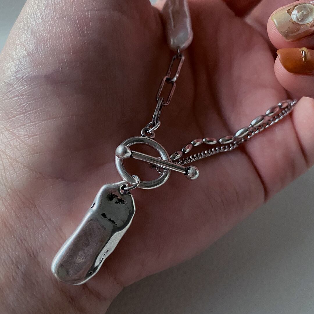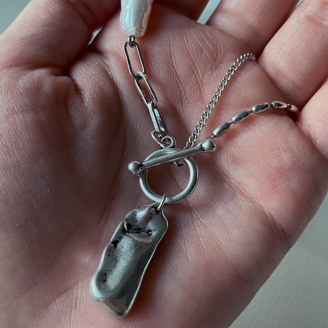 淡水パールと3種類のチェーンが織りなす、洗練されたデザインのネックレス。シンプルなスタイルにも、個性的なコーディネートにもぴったりフィットし、あなたの魅力を引き立てます。特別な日の装いにも、日常使いにも最適なアイテムです!その美しさと存在感は、どんなシーンでも光ることでしょう。