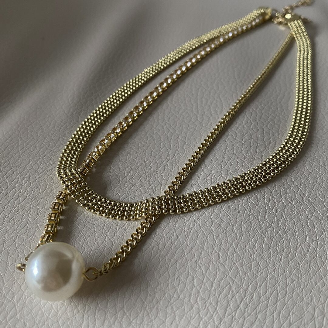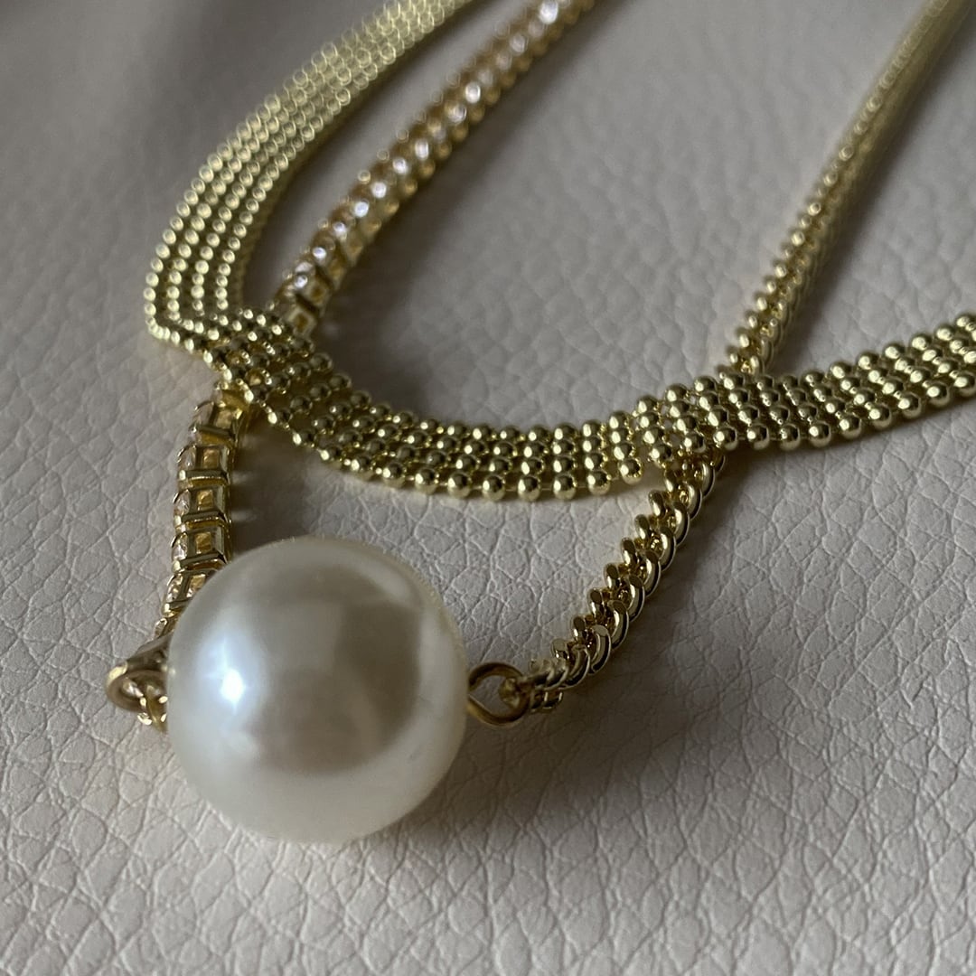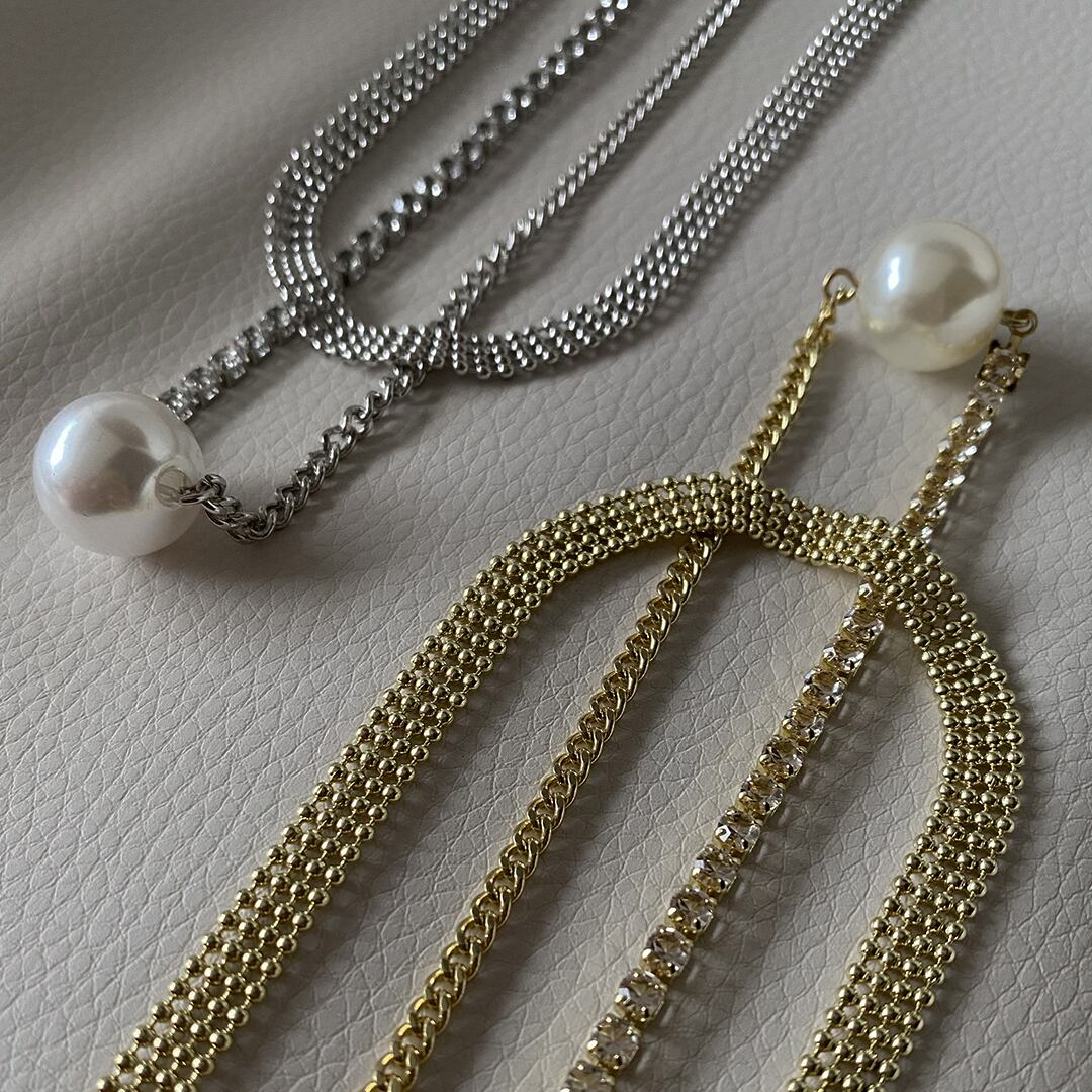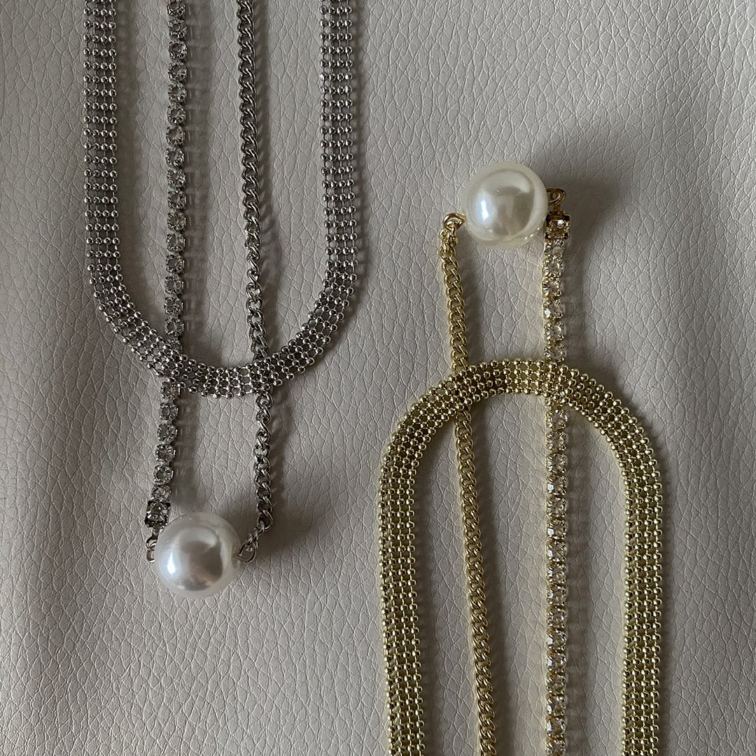 エレガントさとトレンド感が融合した、2連のパールが放つ上品な輝きが魅力的です。シンプルながらも存在感があり、普段使いから特別なシーンまで幅広く活躍します。コーディネートのアクセントとして、日常のスタイルをワンランクアップしてくれるアイテムです。