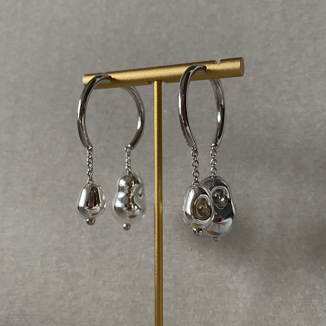 ぷくぷくしたフォルムと揺れるデザインが特徴。シンプルながらも個性的な印象を与え、どんなスタイルにも嬉しいアクセントをプラスします。軽量な作りで、着け心地も抜群です。